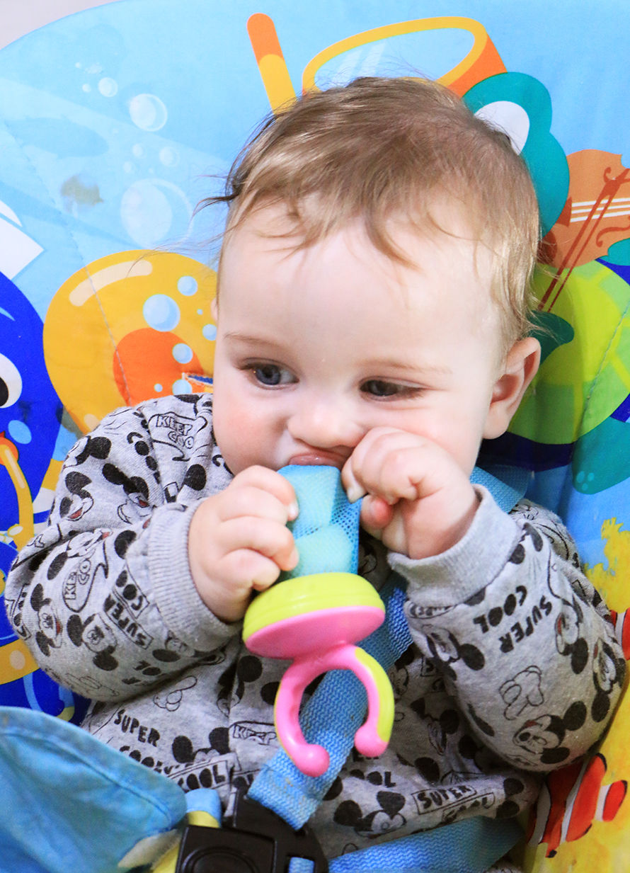 שני הילדים שלי התחילו את הטעימות הראשונות שלהם עם המוצץ רשת הזה. נורא פשוט: פורסים אגס, אפרסק, מלון או כל פרי אחר לקוביות, מכניסים בתוך הרשת ונותנים לתינוק למצוץ את הפרי תוך כדי שהוא מחזיק אותו בעצמו. כבר מגיל 4 חודשים שניהם נורא נהנו מזה. זאת גם אחלה התעסקות בשביל התינוק כשאנחנו רוצות קצת זמן להכין לעצמינו קפה.